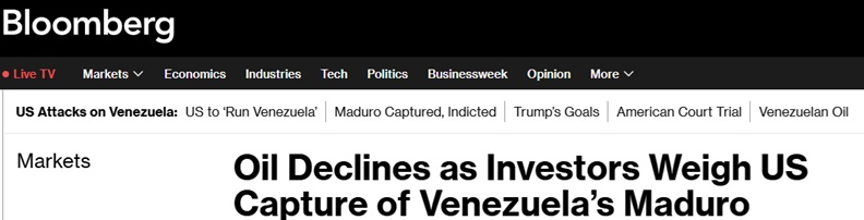 2026年伊始,地缘政治“黑天鹅”事件突然爆发,美军在当地时间上周六(1月3日)凌晨对委内瑞拉发动军事打击,扣押委内瑞拉总统马杜罗(Nicolás Maduro)并宣布将由美国全面接管委国石油产业。
