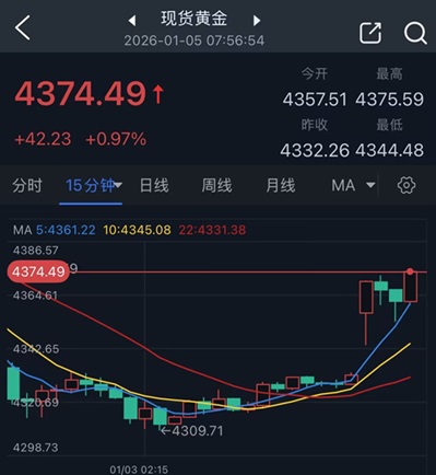 周一(1月5日)亚洲交易时段开始后,现货黄金大幅跳空高开,金价日内已经暴涨逾40美元。此外,白银价格也飙升。