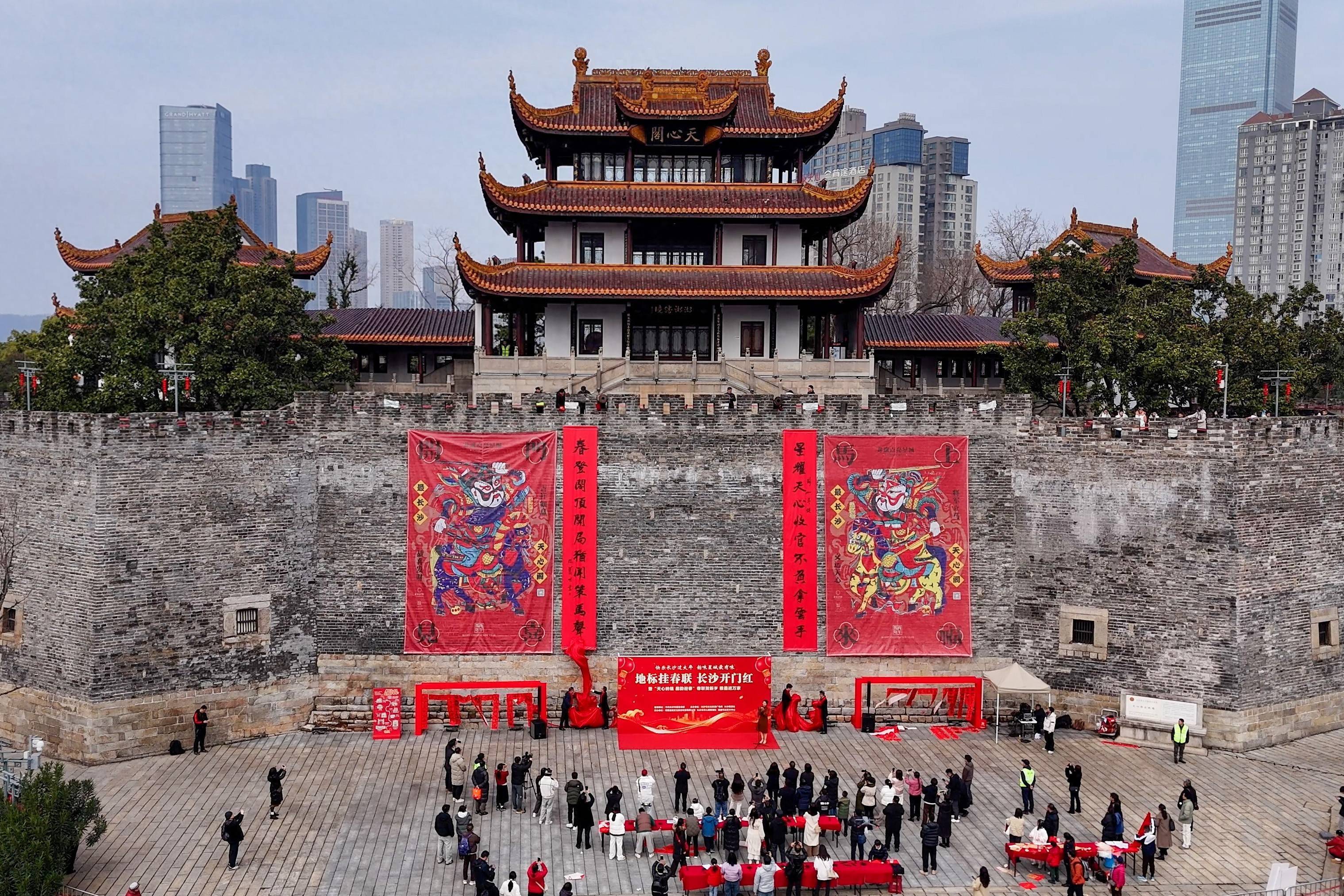 新年新气象,长沙地标新春联登场。2月11日,“地标挂春联 长沙开门红”2026长沙春联揭联仪式在长沙天心阁城墙广场举行。本次春联征集大赛评选出的优秀春联挂上了天心阁、浏阳门、中山亭等地标。市委常委、市委宣传部部长伍贤运出席。