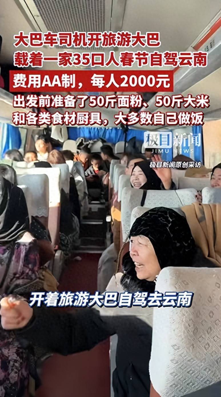 干了近10年旅游大巴司机,赵雄终于如愿,趁着这次春节假期,他开着公司的旅游大巴,载着全家34人从青海西宁一路向南,赴云南西双版纳旅游。